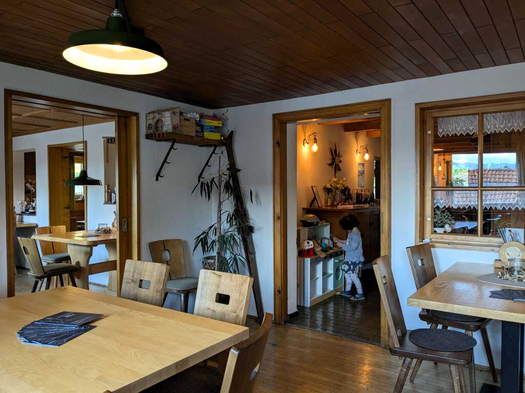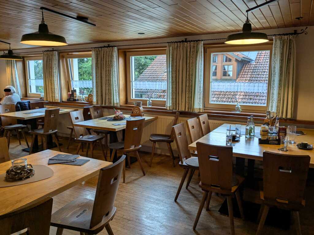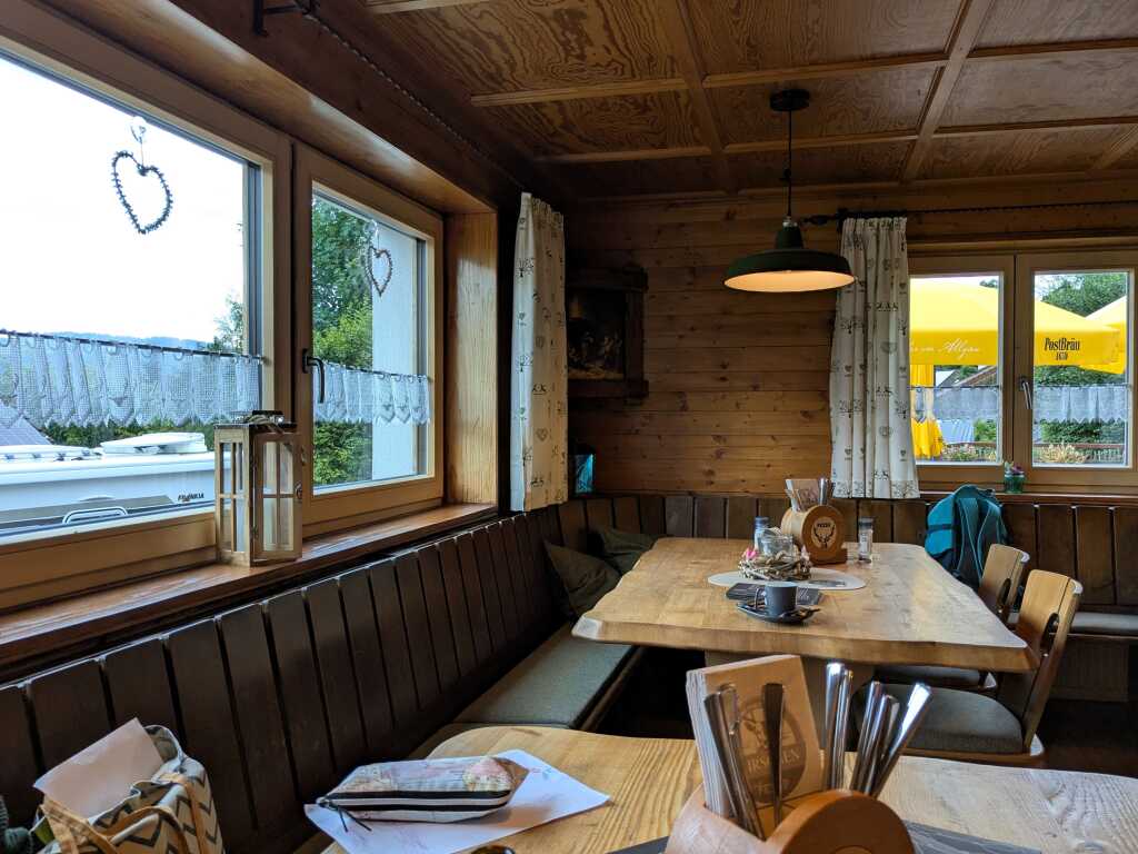 Davon wären – bei entsprechendem Durst – sicher noch ein paar Schoppen mehr „drin“ gewesen. Aber die kurvenreiche Landstraße nach Obertrogen (Gemeindeteil von Weiler-Simmerberg) wartete im Anschluss an das Abendessen auf einen sicheren Heimfahrer. („Lass das mal den Papa machen, der Papa macht das juut…“)
