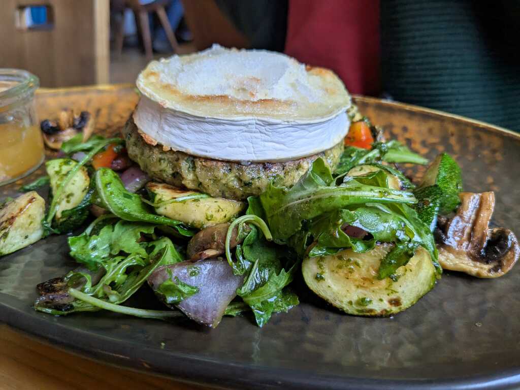 Selbst das Mango-Chutney schien ihren aus frischen Produkten zubereiteten Veggie-Teller nicht zu schmälern, sondern passte ausgesprochen gut zur Bratling-Käse-Kombi, die mit stolzen 17,90 Euro zu Buche schlug.