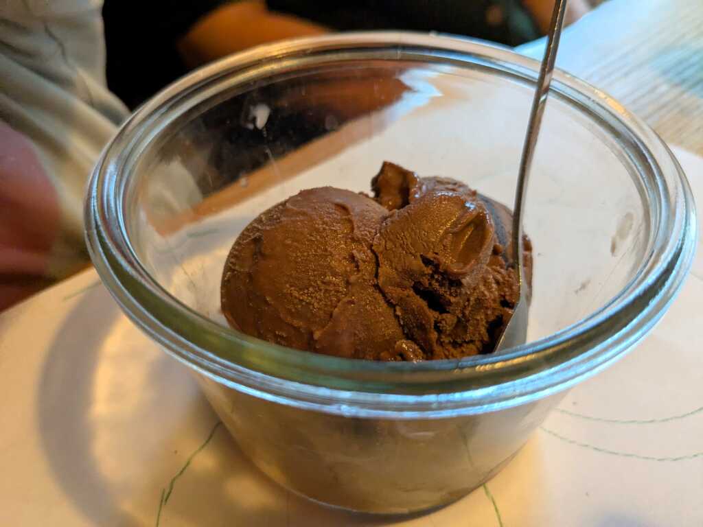 Auch das Töchterchen genoss ihre Käsespätzle und freute sich bereits nach halb gelöstem „Spätzial-Auftrag“ auf ein kugelförmiges Eiserlebnis aus Milch und Schokolade zum Nachtisch.