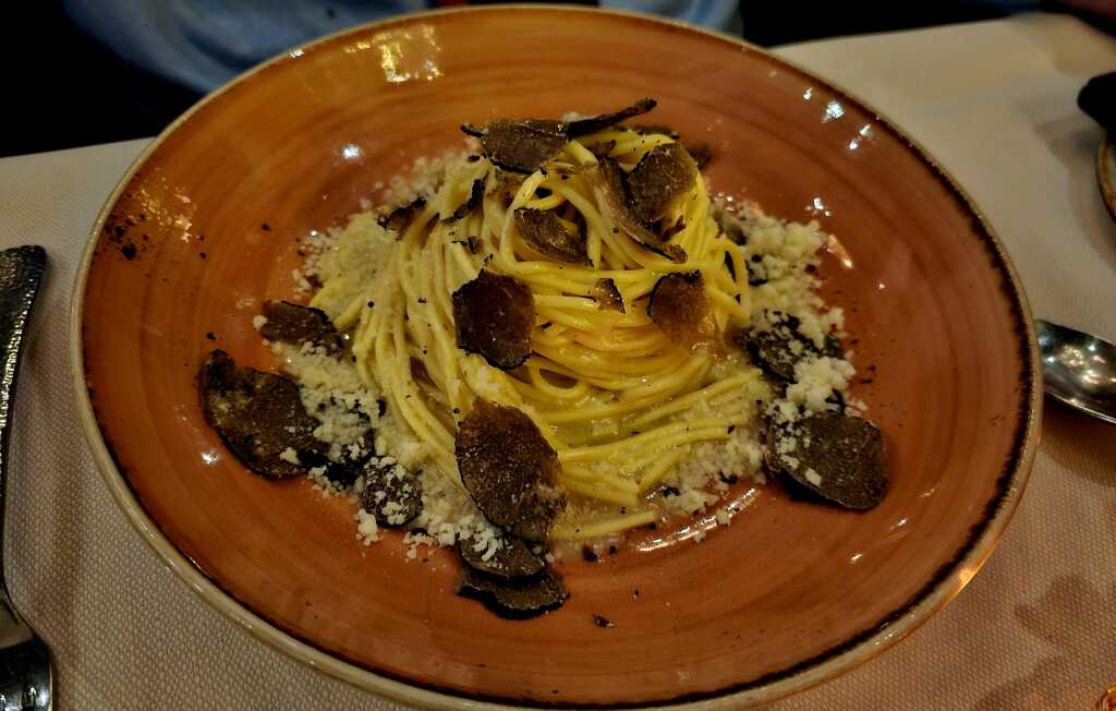 Ich wählte das Tagesangebot der Tagliolini mit weißem Albatrüffel mit unbekanntem Preis. Natürlich war ich mir bewusst, dass der weiße Trüffel teurer ist.