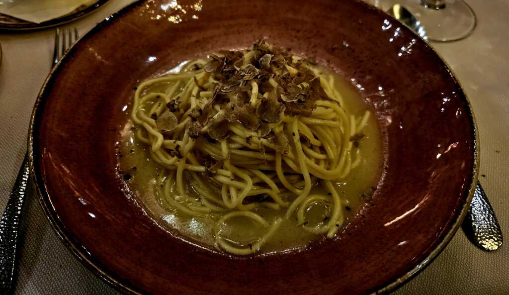 "Möchten wir ein Aperivo?" Diverse Tagesempfehlungen wurden heruntergerattert, die Empfehlung der Pasta mit weißem Albatrüffel ließ mich aufhorchen.