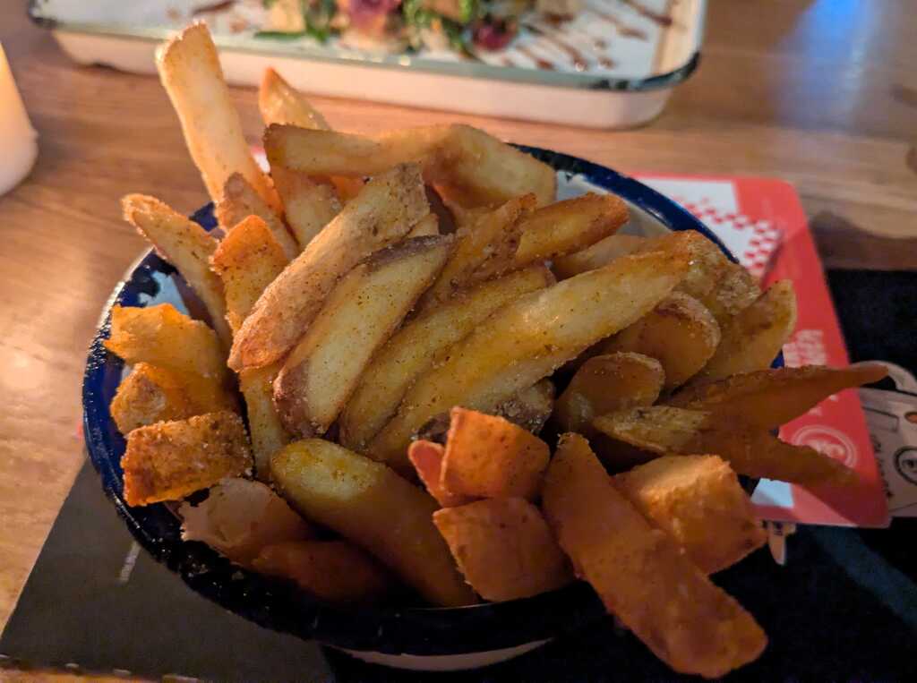 Die nicht zu dünnen, teilweise noch mit Schale aus der Fritteuse geangelten Erdapfelstäbe operierten hart an der oberen Salzwürze.