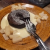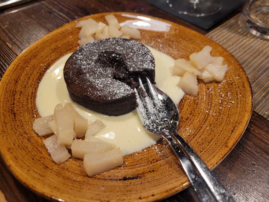 zum Abschluß hatte nur noch 1 unserer Runde Kapazität und genoss als Dessert 1 warmer Brownie mit Vanillesauce .