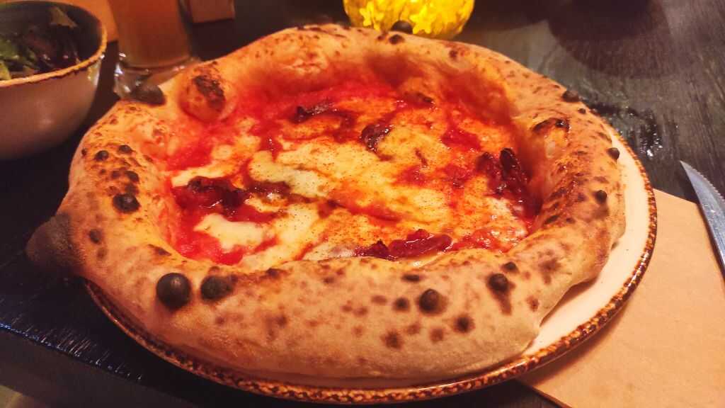 Die Pizzen erreichten uns „mitten im Salat“ und sahen wirklich gut aus. Ein Rand wie auf Botox, neapolitanischer Art eben.