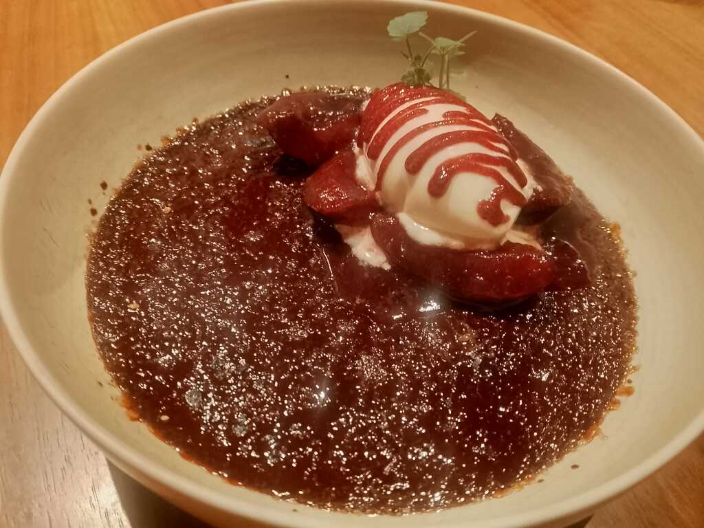 Creme Brûlée von der Dunklen Schokolade, Zwetschge & Vanille Rum Eis