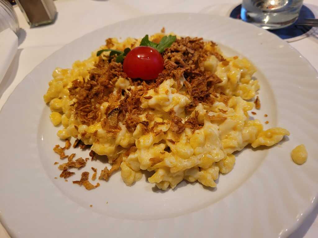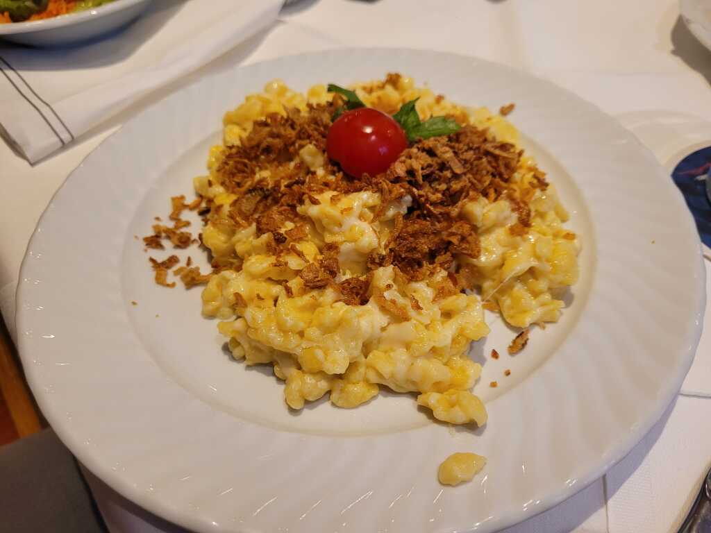 Meine Frau hatte, typisch für einen Gaststättenbesuch in Bayern, natürlich die Hausgemachte Käsespätzle mit Röstzwiebeln gewählt,