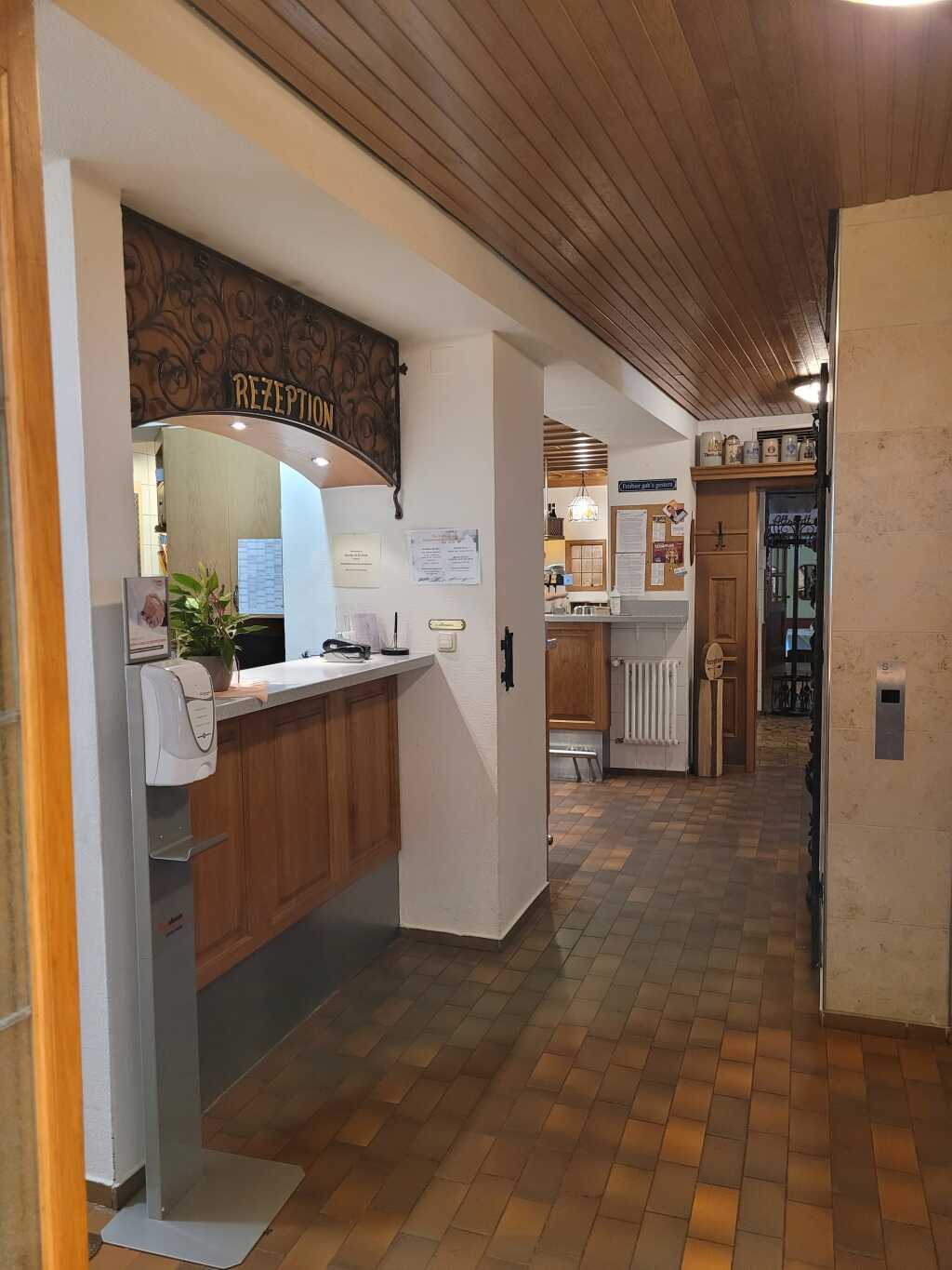 Auch die große, hölzerne Anrichte, auf welcher am Morgen sicherlich das Frühstücksbüffet für die Hotelgäste angerichtet wird, war aus rustikalem Holz.