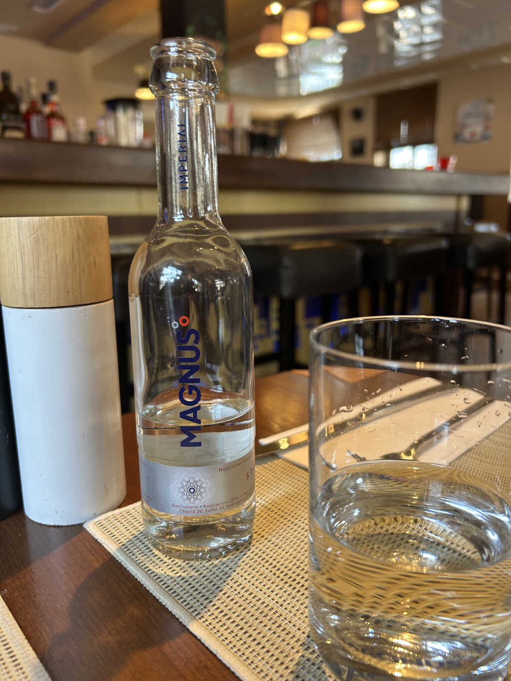 Wir wurden freundlich begrüßt , gefragt ob wir zu zweit sind und zum Tisch gebracht mit einem bitte schön und er legte uns die Karten hin. Der Service ist immer noch einheitlich schwarz gekleidet und diesmal hatten sie alle beige Schurz aus Art Jeansstoff an.Wir bekamen Zeit einen kurzen Blick rein zu werfen als er nachfragte was wir trinken möchten . Die Getränke kamen rasch mit zwei Ouzo, es gab ein bitte schön , Jamas.