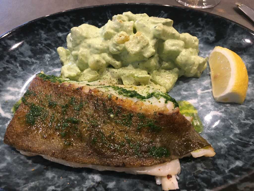 Auch hier hatte das Filet eine angemessene Größe. Das Fleisch war innen saftig und ansprechend im Mund. Die Haut war gut zu essen; hätte für mich aber noch knuspriger sein dürfen.