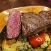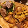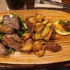 Die Highlights der " Krumm Stubb " sind die Steaks von heißen Stein . Auf einem heißen Lavastein wird am Tisch vom Gast selbst das bestellte Fleisch gebraten , dazu werden 3 verschiedene Saucen - Bratensauce, Aiolisauce, Kräutertomatensauce plus Ofenkartoffel mit Kräuterschmand serviert.