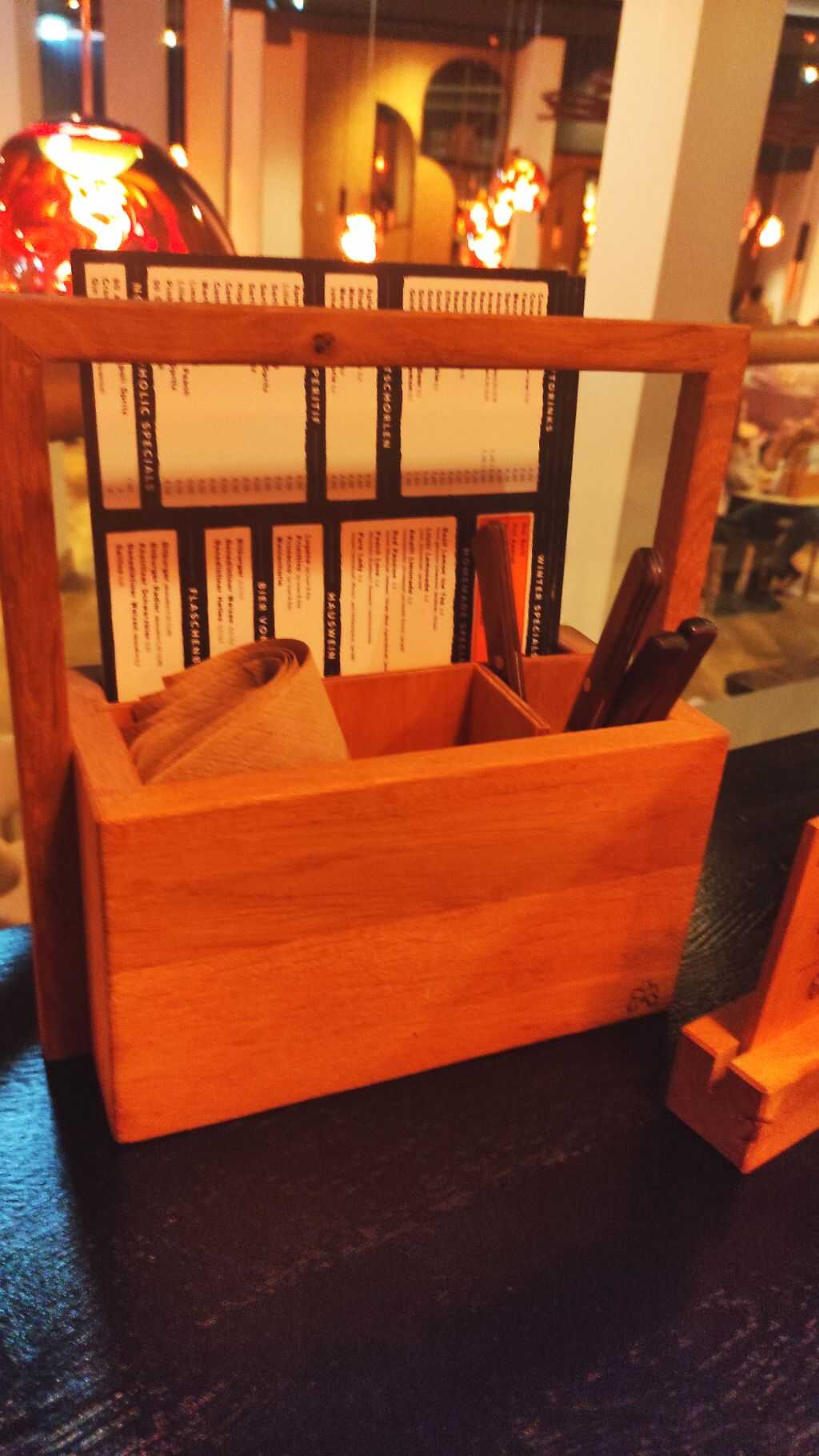 Dann bekamen wir auch die angemessene Zeit uns erst mal zu akklimatisieren und die Karten in Holzständern (dort mitsamt Servietten und Besteck) zu scannen.