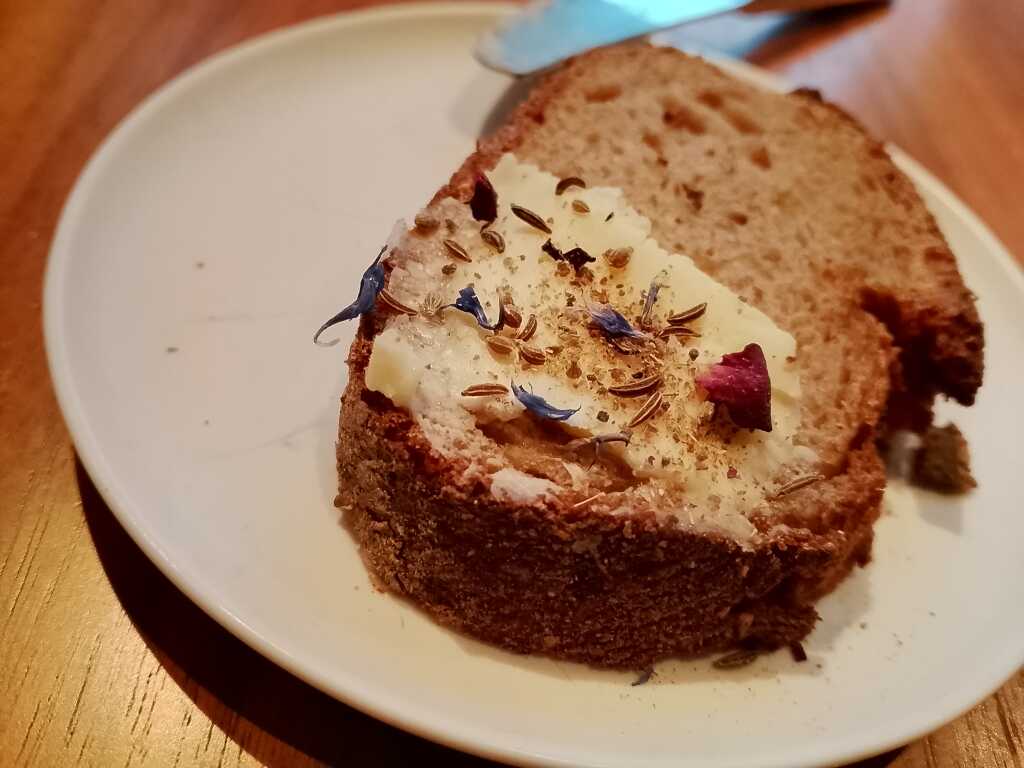 Brot, außen knusprig, innen so fluffig, dass man kurz überlegt, es als Kopfkissen mitzunehmen. Dazu ein Spiegelei mit Kräutern modern interpretiert– simpel auf dem Papier, aber geschmacklich eine kleine Offenbarung. Man fragt sich unweigerlich, warum man zu Hause je etwas anderes frühstückt - habe mir am nächsten Tag im Gewürzladen natürlich gleich die Kräuter/Gewürzemischung zugelegt.