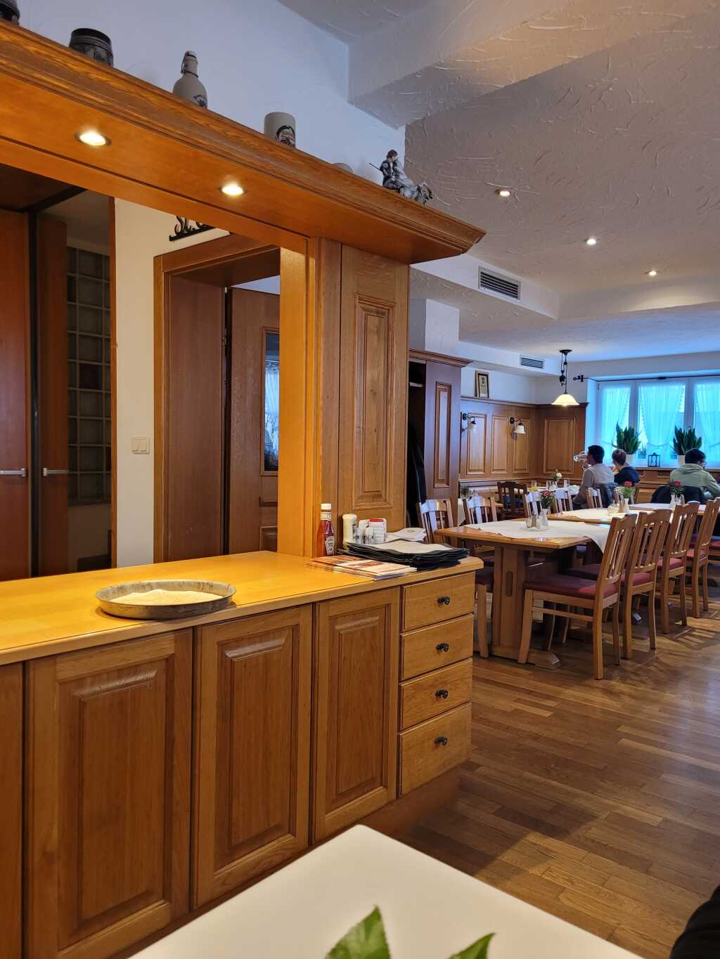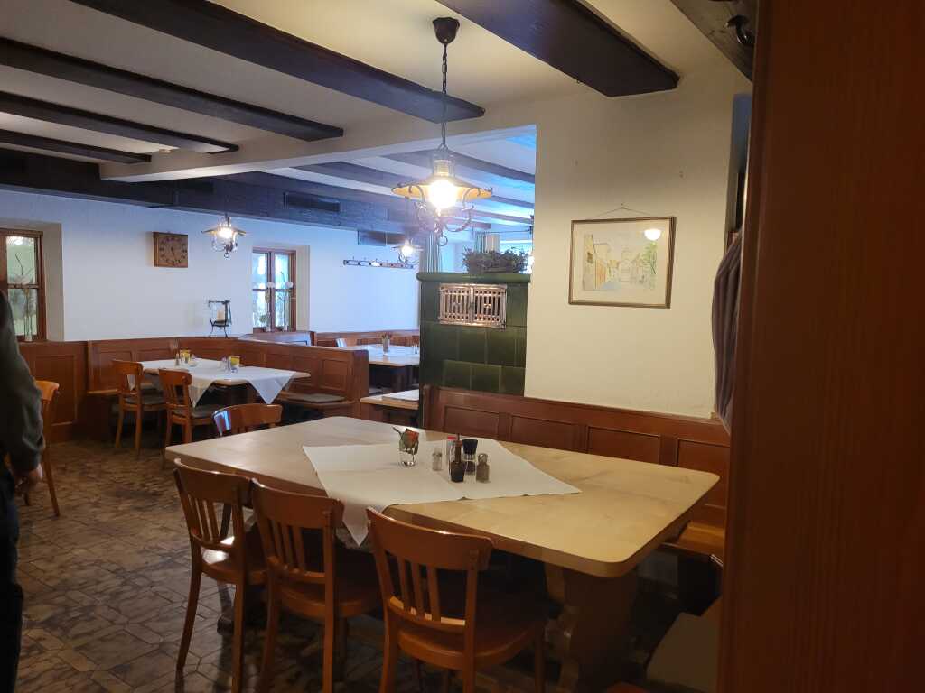 Bis zur Getränkelieferung hatten wir nun etwas Zeit uns im Gastraum umzusehen. Modern gehalten, aber die alte bayrische Tradition bewahrt. So würde ich es beschreiben. Denn vom Licht und der Lüftungstechnik war der Gasthof auf den neusten Stand, aber gleichzeitig wurde der Charme eines alten Gasthofes mit der Holzvertäfelung an den Wänden beibehalten.