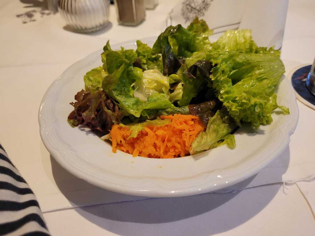 Wenig später kamen dann auch schon die Salatteller, welche als Beilage zu dem Schnitzel und den Käsespätzle waren. Auch hier wieder typisch Bayern, denn der Rot- als auch Weißkrautsalat waren selbst angerichtet, herrlich frisch und knackig und mit einem milden Essigdressing verfeinert. Eine starke Kümmelnote, welche sicher nicht jeder mag, übertünchte den Krautsalat.