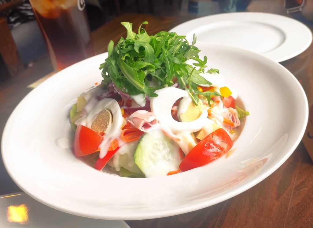 Als gemeinsame Vorspeise sollte es bei uns wie immer ein Salatteller sein. Der Insalata della Casa (11,50), gemischte Salate mit Schinken, Ei und Käse war unsere Wahl.
