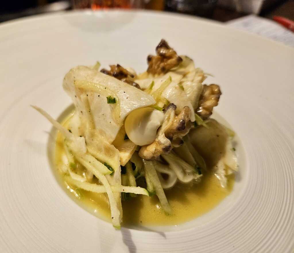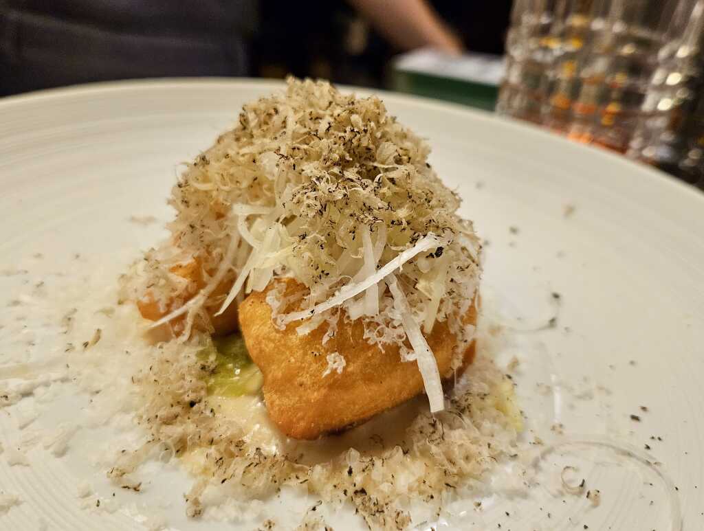 Pappardelle in Trüffelrahm mit frischem Herbsttrüffel, dazu gebratenes Filet vom Färöer Lachs