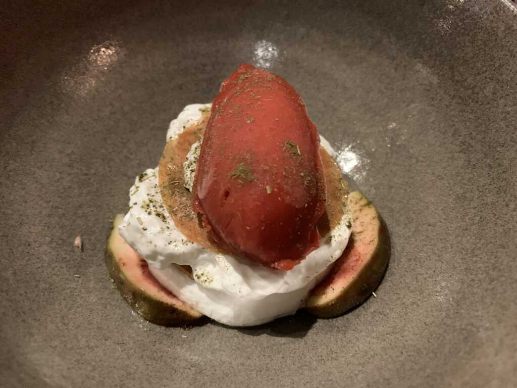 Halbrohes Thunfischsteak mit mediterranem "Grumbeersalat" und Ratatouile-Zucchini