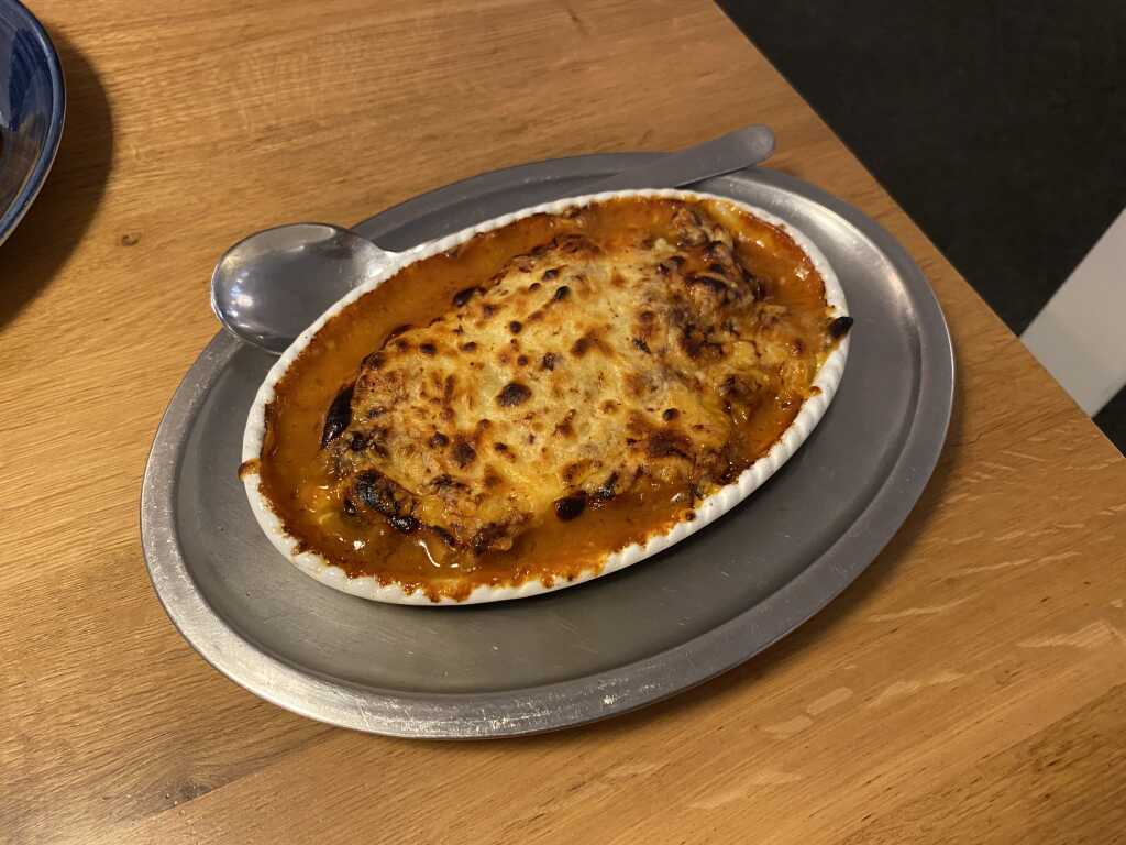 Das Gyros kam sehr heiß an den Tisch. Der Käse war schön zerlaufen und etwas knusprig. Er hatte auch Geschmack. Das Gyros war wie beim anderen Teller. Die Metaxasoße war hier mal anders als man sie so oft bekommt. Sie hatte einen dezenten tomatigen Geschmack , schön würzig abgeschmeckt und der Metaxa kam dezent durch. Hat uns gefallen.
