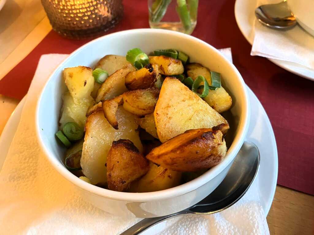 Bratkartoffeln - die unteren Kartoffelstückchen waren leider nicht gebraten und schmeckten teilweise nach Kühlschrank - womöglich zu lange im Plastikbehälter gelagert