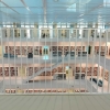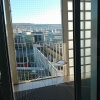 Leider darf man Speisen und Getränke nicht auf die sehr beliebte Dachterrasse einen Stock höher mitnehmen, obwohl das auch mir verlockend erschienen wäre – lediglich in die kleine, schmale, gut gesicherte Loggia mit Blick aufs Europaviertel und sogar den Fernsehturm in der Ferne. Doch das Café Lesbar imponiert selbst mit einem hellen, lichten Ambiente: ungeheuer propper, ohne einzigem Krümelchen auf dem Tisch, mit schneeweissem Mobiliar, viel Glas und einigen blauen Akzenten, nebst Blumen auf dem Tisch. Fast transparent erscheint der Raum. Und unter Höhenangst sollte man hier auch nicht leiden. Auch für Veranstaltungen (wie Hochzeitsfeiern) ist ein Raum im Haus mit Bewirtung von der Cafe Lesbar zu mieten. Die Toiletten befinden sich bequem auf derselben Ebene und sind selbstredend genauso tipptopp sauber und gepflegt wie das Café.