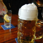 Das Hauptgericht meiner Frau war das "Rehgulasch in Rotwein mit hausgemachten Spätzle" für EUR 19,50. Dass "hausgemacht" häufig nicht "selbstgemacht" ist, dürfte hinlänglich bekannt sein. Diese Spätzle waren weder vom Spätzlebrett herunter handgeschabt noch durch die Spätzlepresse gedrückt; sie waren aber gut gekauft, genau wie das "hausgemachte" Brot. Ich hatte mich bereits zuhause auf die "Wildpfanne mit Gulasch, Leberknödel und Steaks auf Spätzle und Gemüse" für EUR 22,50 eingeschossen. Siehe da, auf der aktuellen Speisekarte hatte die Komponente Gulasch der Leber weichen müssen; laut Zusatzinfo von Frau Hennrich sind Leber, Leberknödel und Steaks vom aus dem Wildgehege Schäfer/Piller stammenden Rotwild. Hocherfreut war ich über die Komponente Hirschleber; denn wann bekommt man schon mal in Restaurants Hirschleber (ausser der Wirt ist selber Jäger). Einem alten Brauch zufolge stehen die Innereien eines erlegten Hirschs (gilt in gleicher Weise auch für Reh, Gams, Steinbock, Mufflon und Schwarzwild) dem Schützen zu und der verdrückt diese dann auch selbst mit grosser Andacht; aus meinem früheren jagdlichen Leben kann ich das nur bestätigen. Mit meiner Wahl war ich ausserordentlich zufrieden: ein fluffiger Leberknödel, zwei dicke Hirsch-Steaks, eines davon medium rare und das zweite etwas über die Garstufe medium gerutscht; als genialer Knaller aber die auf den Punkt medium rare gegarte Hirschleber. Schlicht und ergreifend einfach zum Niederknien! Das "Beilagegemüse" dagegen, ein paar Rädchen von der Möhre, war absolut entbehrlich; Rosenkohl dagegen hätte diesem Prachgericht gut zu Gesicht gestanden und mich erfreut.
