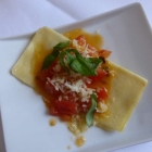 Nach dem obligatorischen Gruß aus der Küche (einem fein garnierten Frischkäse-Raviolo)