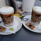 So bestellten wir uns zwei Latte Macchiato für je 3,00 €,