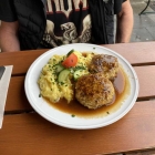 Schweine-Schaschlik mit Kroketten und Satsabeli-Dip Tscheburek - eine durchaus sättigende Vorspeise! Tscheburek mit Adija-Sauce
