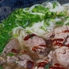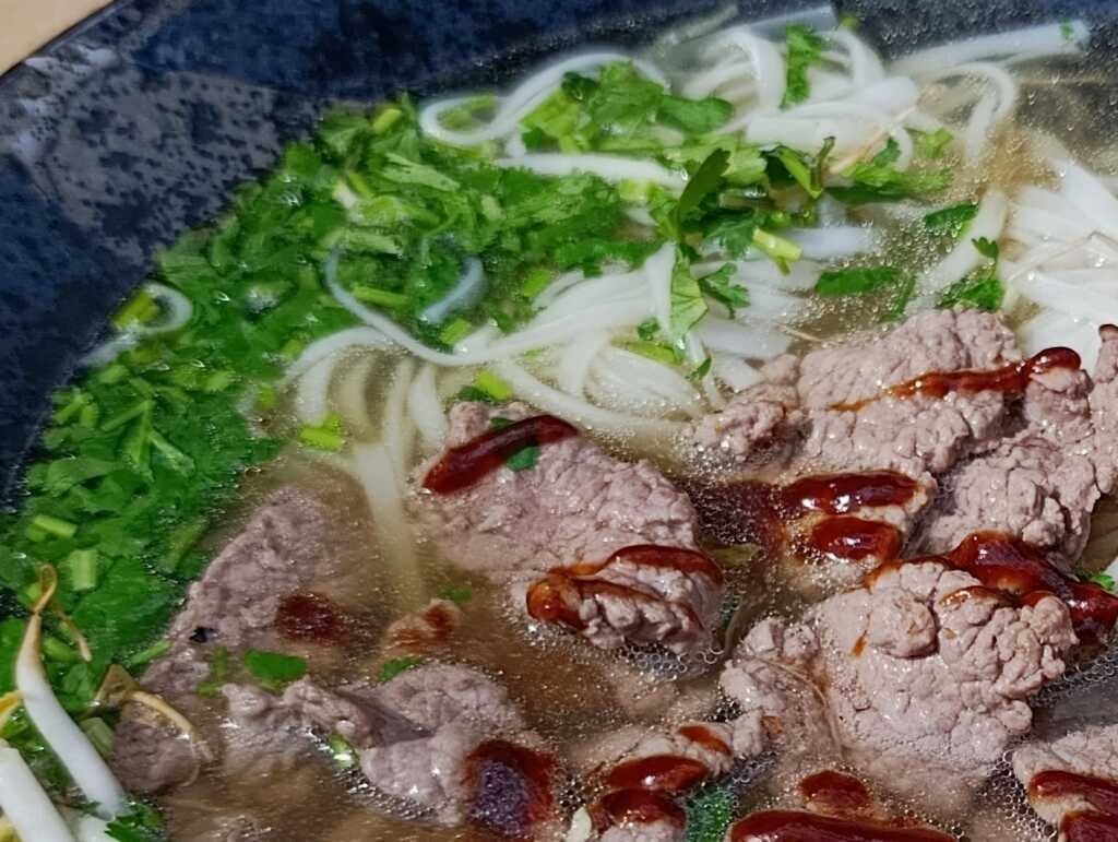 Der Pho ist jedenfalls ohne Brühwürfel und Glutamat, reich an Nudeln und mit Koriander wird nicht gegeizt, das Rindfleisch passt geschmacklich - hat aber eine geheimnisvolle, leberwurschtartige Konsistenz, das kannte ich so noch nicht. Ein paar Hoisinsaucenspritzer dienen eher der Zierde und nicht dem Geschmack.