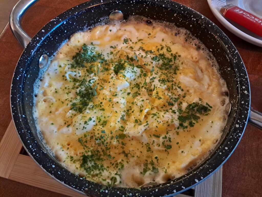 Beim letzten Besuch war es recht kühl im Lokal. Wir saßen damals aber auch in Türnähe. Das wollten wir heute vermeiden. Wir bekamen auch einen Tisch auf der windstillen Seite. Das war deutlich angenehmer.