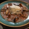 Das Fleisch war dünn geschnitten. Die Portion war auch recht groß – das kam mir entgegen, denn ich mag Fleisch recht gerne (meine Ärztin fragt bei Kontrolluntersuchungen immer, ob ich genug Fleisch (aber auch Dinkel) esse, weil mein Bild einen leichten Mangel an Vitamin B12 ausweist). Die Pilze waren sehr gut verarbeitet und hatten starke Aromen. Der Salat war unter einem Berg von Parmesan verborgen. Ich liebe frisch gehobelten italienischen Hartkäse sehr.