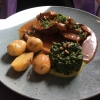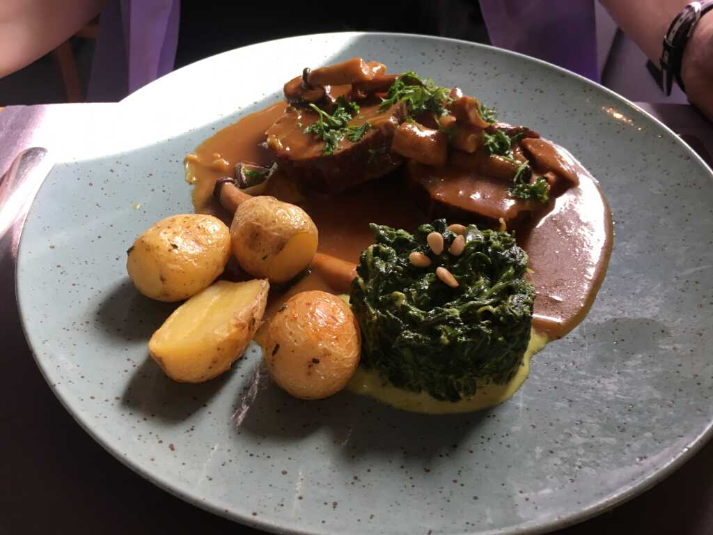 Das Fleisch war zart und gut gewürzt. Die Sauce rundete den Braten perfekt ab. Die Kartoffeln waren in der Schale gegart und leicht durch eine Pfanne geschwenkt worden. Dadurch konnte die Sauce gut aufgenommen werden; aber knusprige Bratkartoffeln mögen wir fast noch lieber.