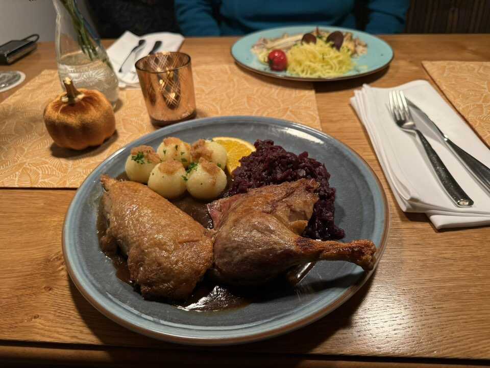 Die halbe Ente kostete mit Rotkohl und Klöße, 32,50 Euro.