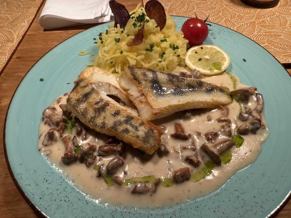 Ich entschied mich für das Zanderfilet mit Rahmpfifferlingen und Kartoffelschnee,zu 32,50 Euro.