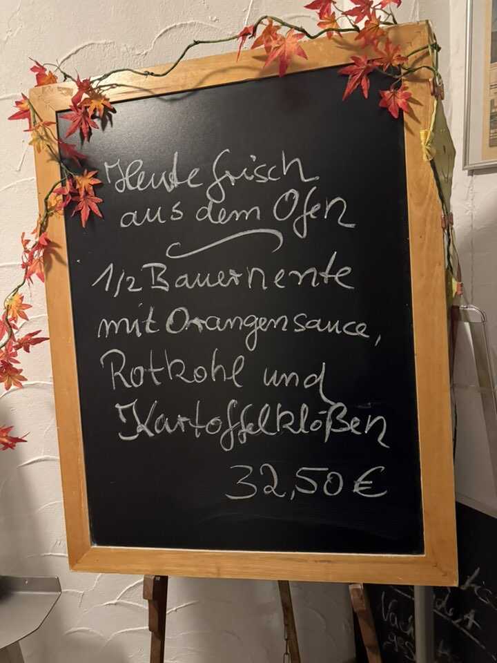 Männe las im Eingangsbereich auf der Tafel,dass es Bauernente gibt.