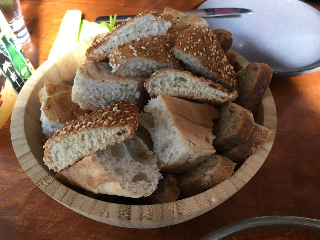 Das Brot gibt es hier wohl immer als Beilage; aber es schmeckt auch sehr gut. Es hat eine krosse Kruste und eine lockere, leichte Krume. Warm ist es auch noch.