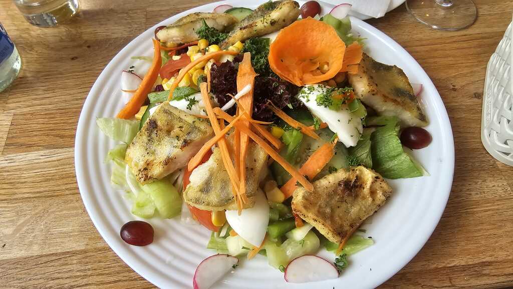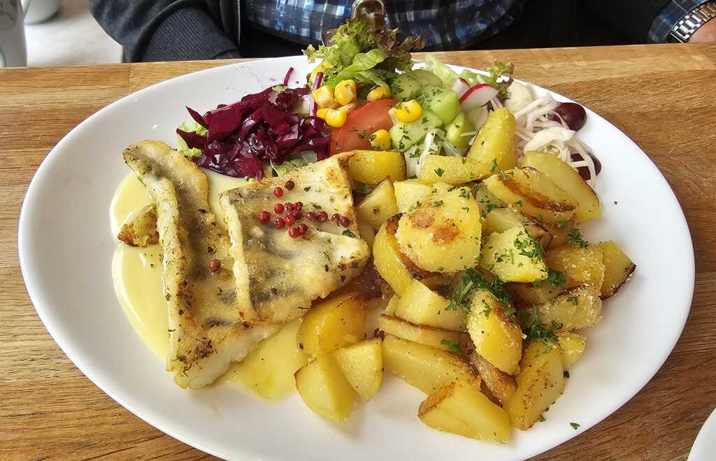 Rotbarsch im Bierteig mit Beilagen