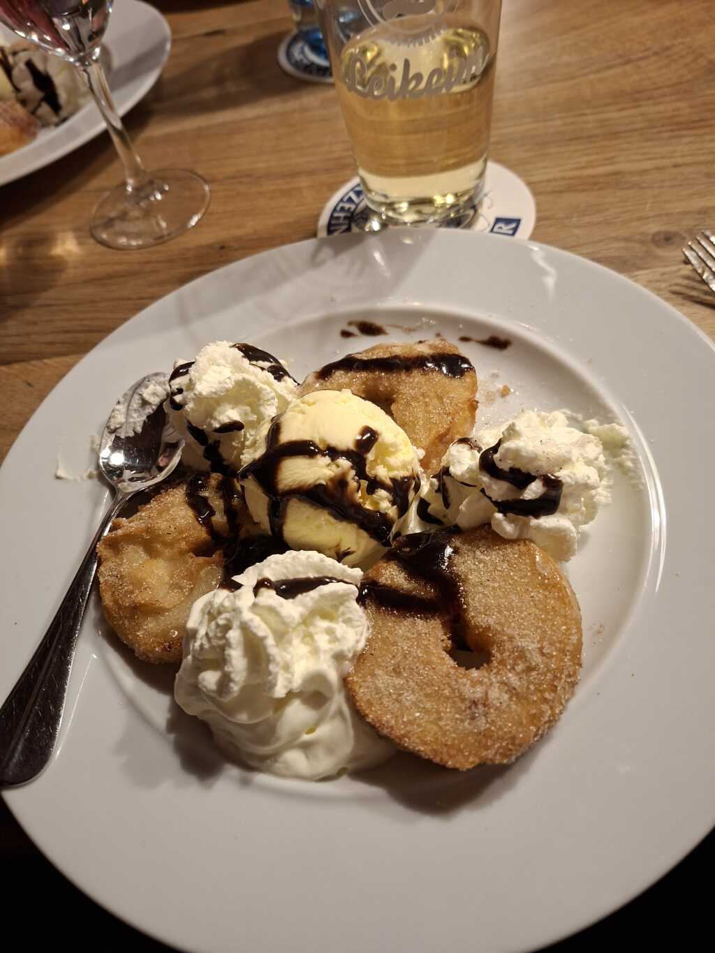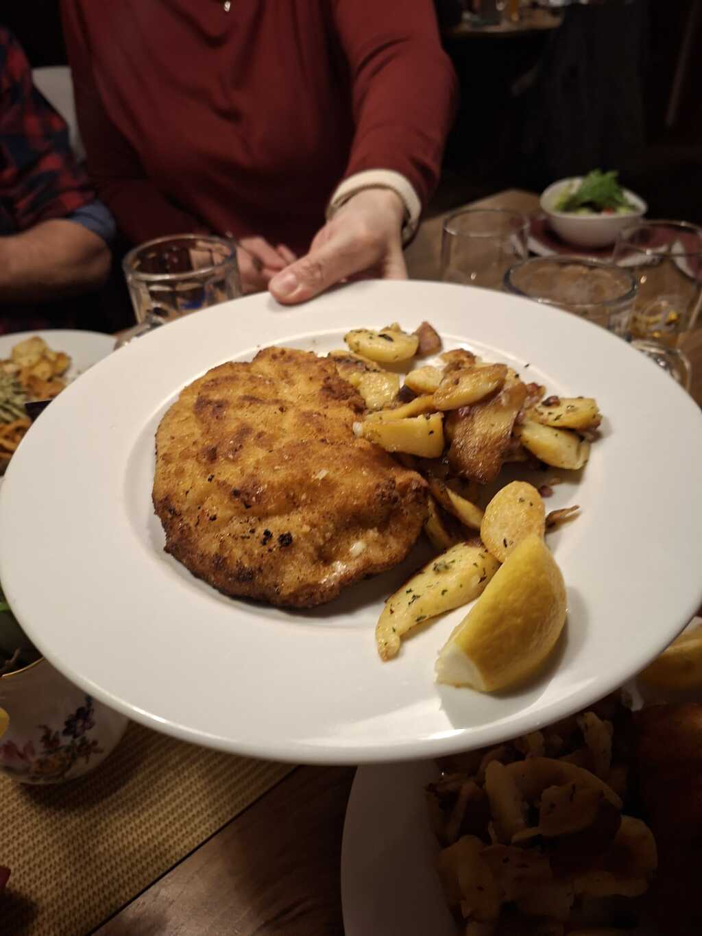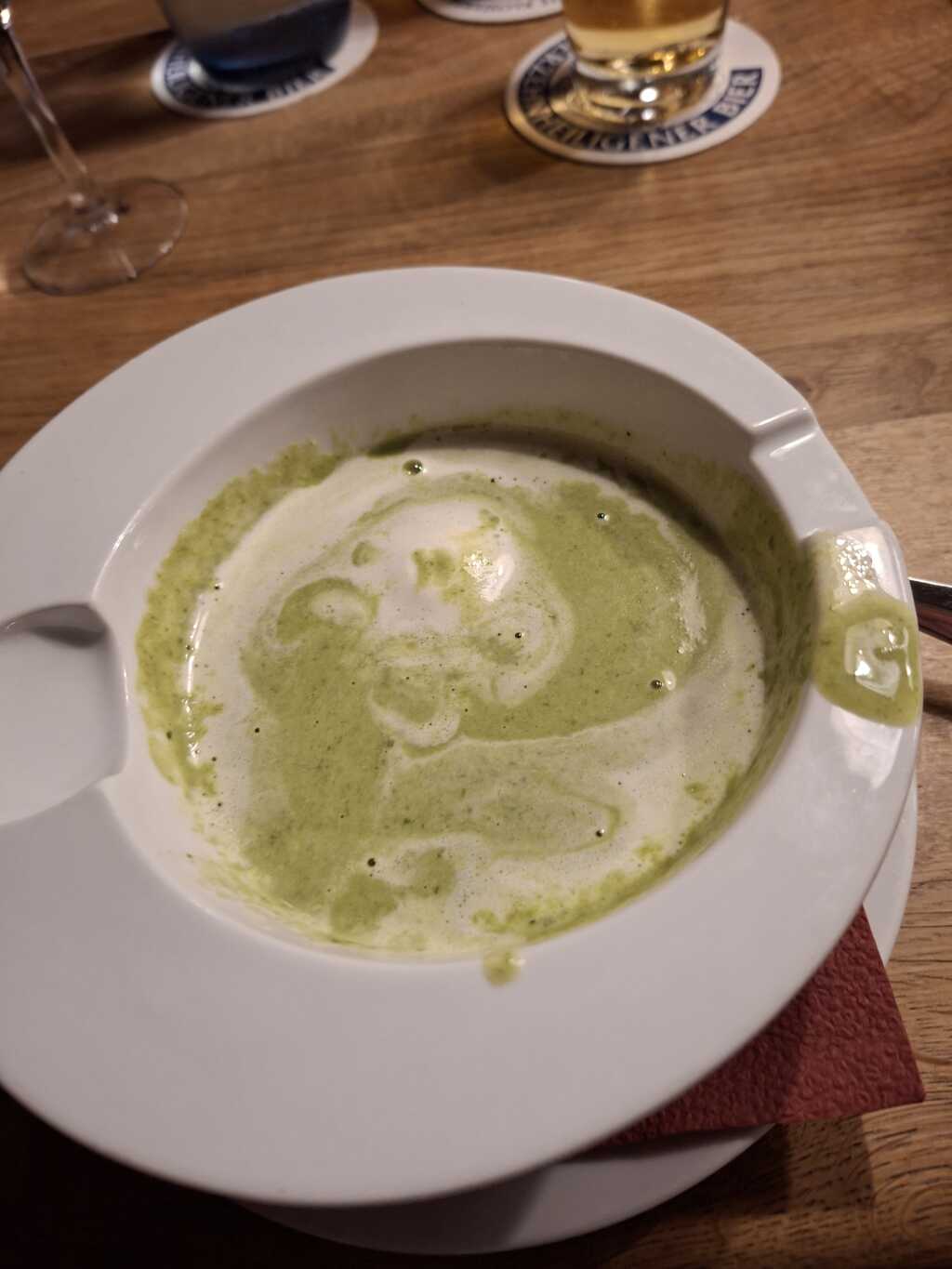 Allerdings hier. Beim nachlesen mussten wir feststellen , er ist nicht besser geworden und diesmal waren wir „ angepisst“. Die Begrüßung war – haben sie reserviert-. Auf unser nein schaute er in sein Buch und meinte bis 19.00 Uhr dann müssen sie weg sein. Auf unser ja um 17.40 Uhr meinte er – da hinten-. Es waren viele Tische noch leer und auf unser wo brachte er uns dann doch zum Tisch bei der Garderobe und legte die Karten an den Tisch. Wir hatten gerade Platz genommen, die Karten noch nicht mal in der Hand kam eine Dame und meinte – zu trinken-. Frage, ja , zwei mal. Die Getränke kamen rasch von einem Herr und dieser meinte bei der Ablieferung- zu essen-. So schnell waren wir nicht bei der großen Auswahl. Kurz darauf war er wieder da und meinte – so nun-. Ein , wir sagen mal Bringer/ Abholer brachte dann rasch die essen mit einem bitte schön. Kurz darauf wünschte uns der andere Herr einen guten Appetit. Es liefen viele rum , die erkennbar zum Service waren, da sie alle gleich angezogen waren mit schwarzen Hosen, schwarzen Laiberl und weißen Hemden. Um uns kümmerte sich aber keiner. Als unsere Teller leer waren war der Abholer wieder da und meinte – darf mitnehmen-. Hierbei teilten wir mit dass wir zahlen würden, wollten ja den Tisch frei machen wie gewünscht. Es kam niemand und es lies sich auch niemand mehr sehen bei uns am Tisch. Zehn vor sieben , keiner kam, dem Bringer nochmal abgefangen und nochmal mitgeteilt, wir würden zahlen. Es kam wieder keiner, es wurde 19.00, keiner kam, auch nicht die anfangs erwähnten Gäste. Um 19.15 machten wir uns dann auf den Weg zur Theke und teilten der Dame mit das wir zahlen würden und schon ewig warten. Sie meinte nur – war Kollege-. Ich meinte dann sie waren doch auch bei uns am Tisch und teilte ihr mit das wir uns mächtig beeilt hatten um den Tisch frei zu bekommen. Was wir alles sagten interessierte sie anscheinend nicht , sie meinte immer nur , war der Kollege. Diesen wollten wir sprechen, aber sie sagte ihm nicht bescheid. ( wir sahen ihn aber aus der Küche raus schauen). Sie zeigte uns den Betrag am Gerätle, ich gab ihr Geld und sagte nichts. Sie nannte uns nochmal den Betrag und wir sagten wieder nichts. Sie klapperte dann die Kollegen ab und als sie wieder kam lies sie uns die 20 Cent nach und gab uns das Restgeld. Wir vermuten mal dass sie kein Kleingeld hatten. Aber hier ist es uns keine Trinkgeld wert, sorry. wir teilten ihr nochmal mit dass wir sauer sind . Man beeilt sich, ich wählte nur eine Suppe dass wir auch fertig werden Es sind wieder 10 Minuten vergangen und der Tisch ist immer noch nicht besetzt. Was kam von ihr – sorry, war der Kollege-. Wir waren so was von sauer. Hätten wir in der Zeit doch in Ruhe essen können, der Tisch war immer noch nicht besetzt und ganz viele andere frei als wir gingen. Der Kollege nicht fähig zu uns zu kommen und die Dame hatte nur für uns immer –war Kollege-. Das kurze Sorry ist für uns auch keine Entschuldigung . Sie wollen anscheinend nur Stammgäste , die wurden hofiert. Andere Gäste werden links liegen gelassen, auch an einem anderen Tisch bekamen wir das mit, da war einiges im argen. Die sind dann auch sehr sauer gegangen. Unsere Meinung ist dass man alle Gäste gleich bedienen sollte, das war bei unserem Besuch nicht der Fall. Sowas geht gar nicht finden wir und darum weil es keine Minus Sterne gibt, 0,5 Sterne