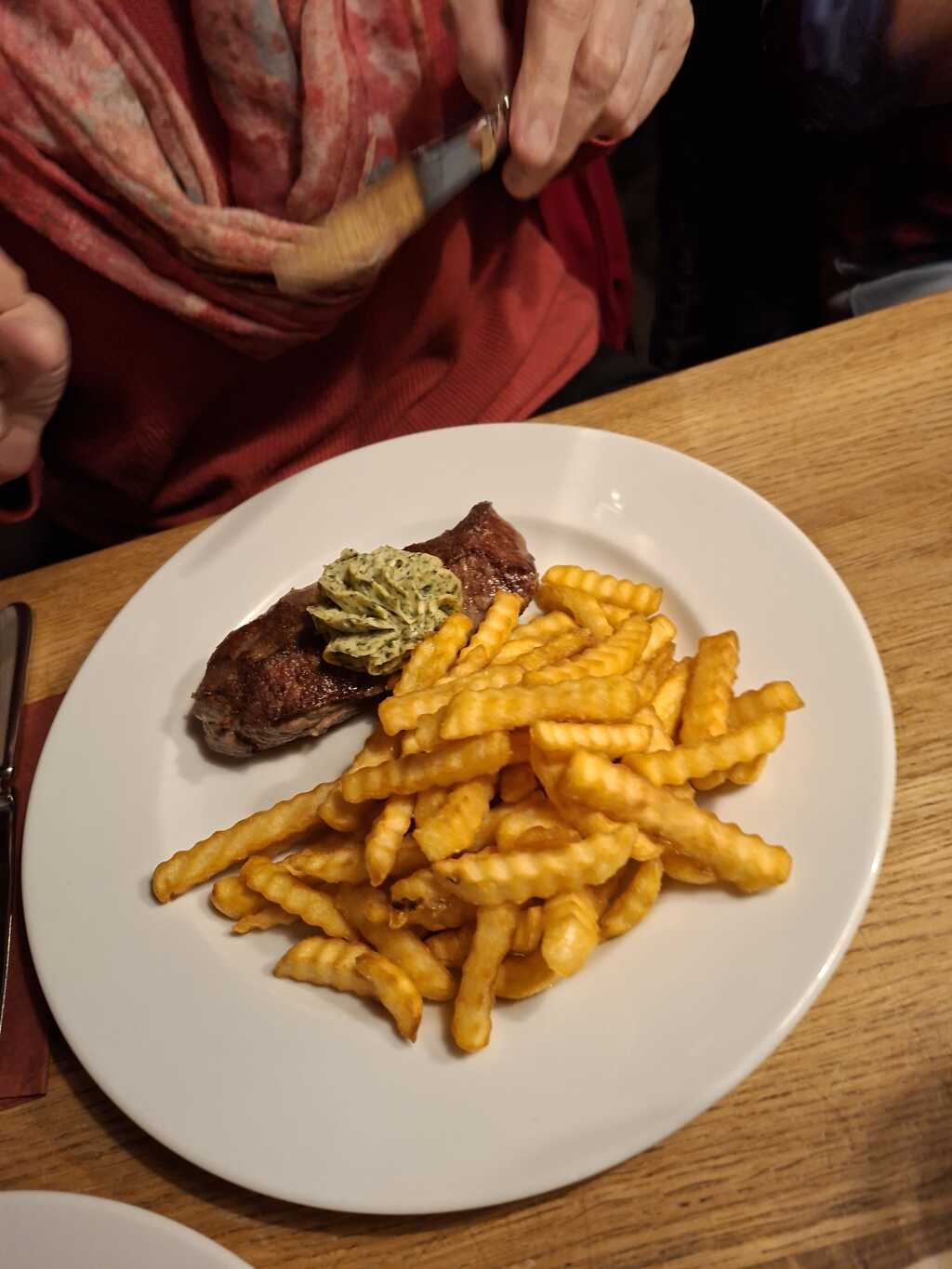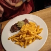 Viel konnten wir bei diesen Besuch nicht so richtig sehen. Wir bekamen vor der Garderobe einen kleinen Tisch der etwas abgetrennt war vom Lokal. Fotos machen bringt da nichts ( die Jacken von den Gästen werden wohl niemand interessieren) . Zurück im Hotel hatten wir die alten Fotos angeschaut und denken dass sich nichts geändert hat in der Zwischenzeit. Wir waren froh dass wir diesen Tisch bekamen , aber schade nur dass bei unserem Besuch einige andere Tische frei waren und wir hier sitzen mussten. Sollen wir diesmal Sterne abziehen oder nicht. Wir entscheiden uns keine zu geben und es gnädiger weise beim letzten Besuch so zu belassen.
