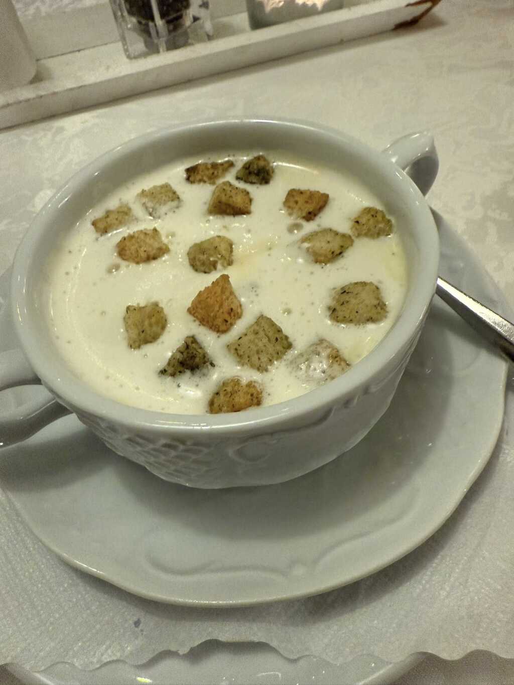 Zur Vorspeise,nahmen wir die Knoblauchcremesuppe, zu 6.80 Euro.