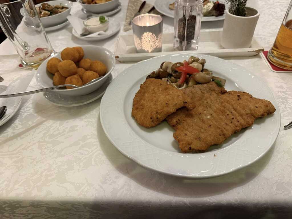 Männe entschied sich bei der Hauptspeise für das Forstmeister Schnitzel, zu 21.90 Euro.