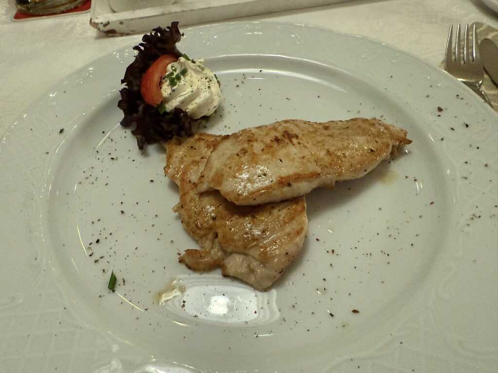 Ich nahm das Steak - Hähnchen,zu 23,20 Euro.