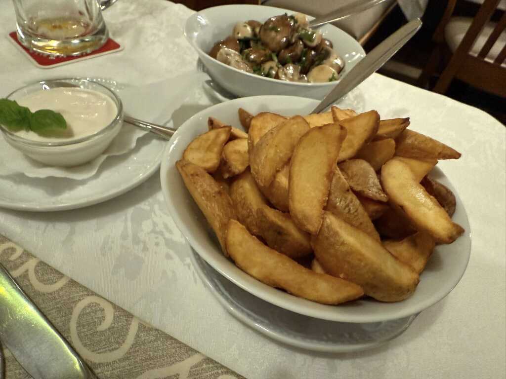 Separat dazu, gab es Steakkartoffeln mit Sauerrahm und gebratene Champignons.