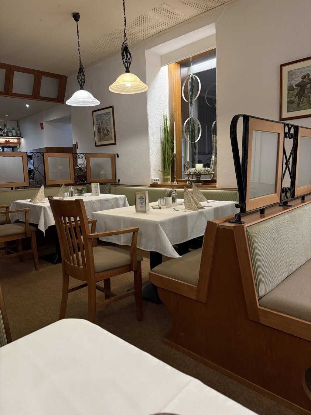 Hier ist es etwas gediegener. So mit weißen Tischdecken,aber trotzdem,ganz gemütlich.