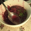 Zur Vorspeise gab es diesmal, rote Bete Salat. Er wurde in einer Sekts Hale serviert und war mit gehackten Walnüssen und Apfelstückchen, verfeinert. Das alles in einer Honig - Senf Marinade.