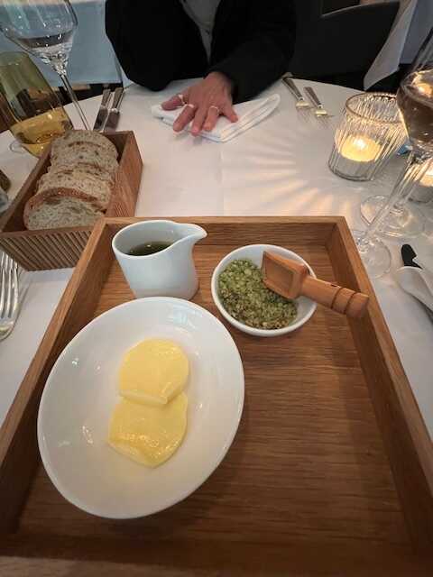 Es gibt immer einen Gruß aus der Küche, welcher aus für jeden 2 Scheiben knusprigen Brot und hausgemachten Dip, besteht. Das alleine ist schon ein Genuss.