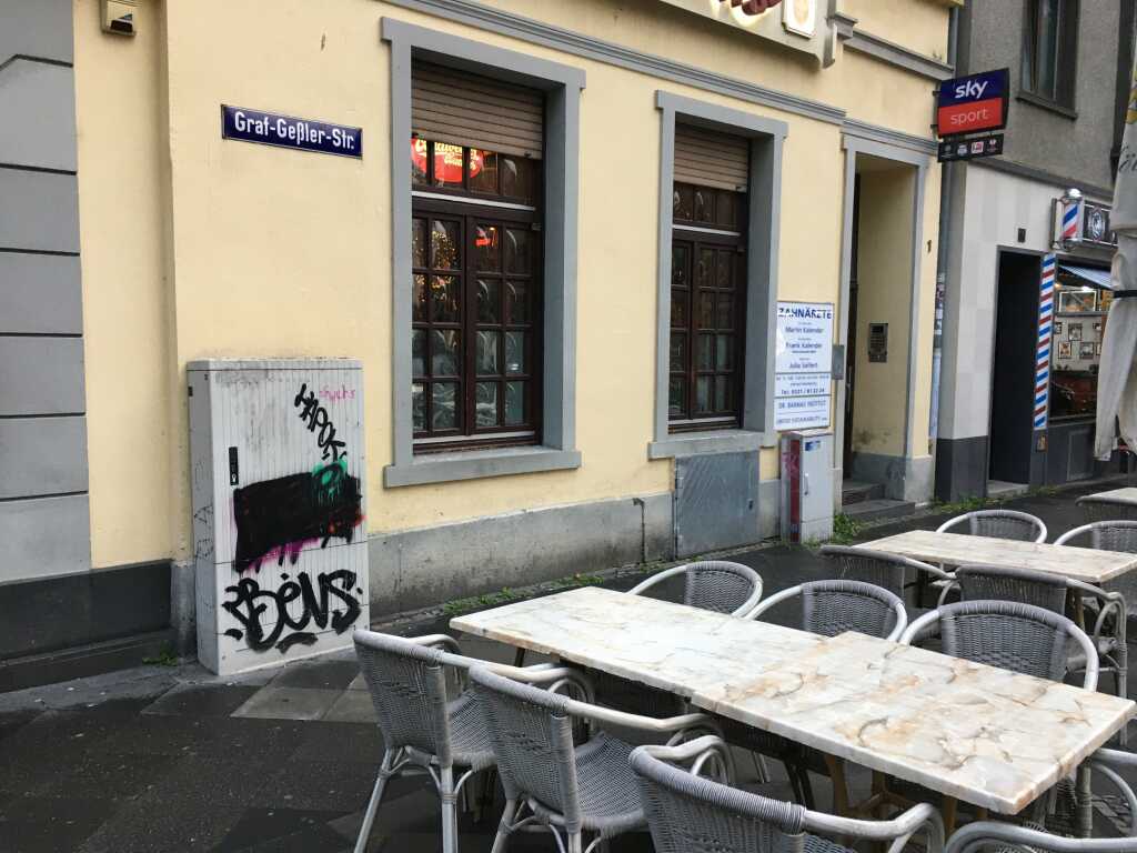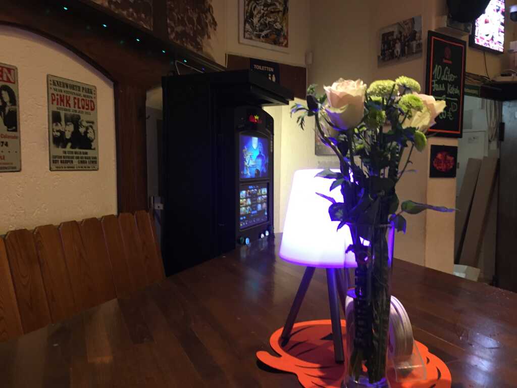 Hier gibt es neben der Theke, die durchaus für viele Gäste Platz bietet, auch eine größere Anzahl von Tischen im angrenzenden Raum.