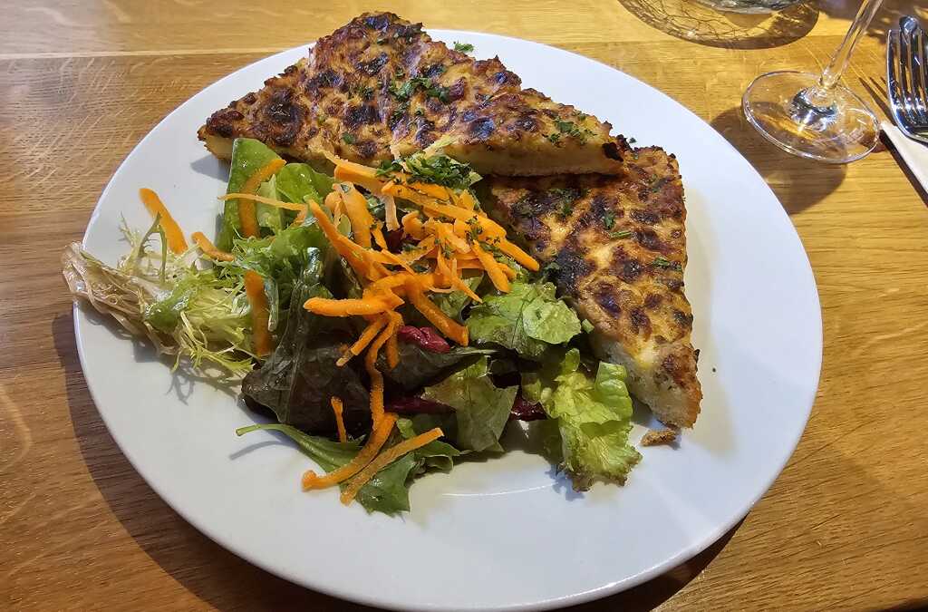 Meine Wahl war die Quiche Lorraine nach Art des Hauses mit einem kleinen Salatbouquet zu € 9,90j.