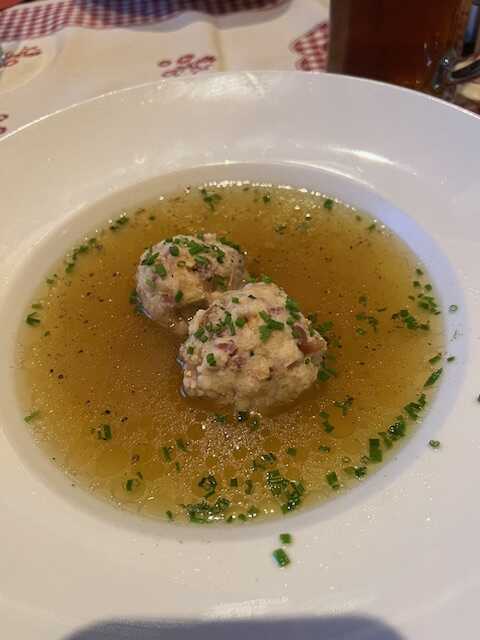 Brühe mit Speckknödeln (2018: 7,90, 2025: 9,10 +15 %)