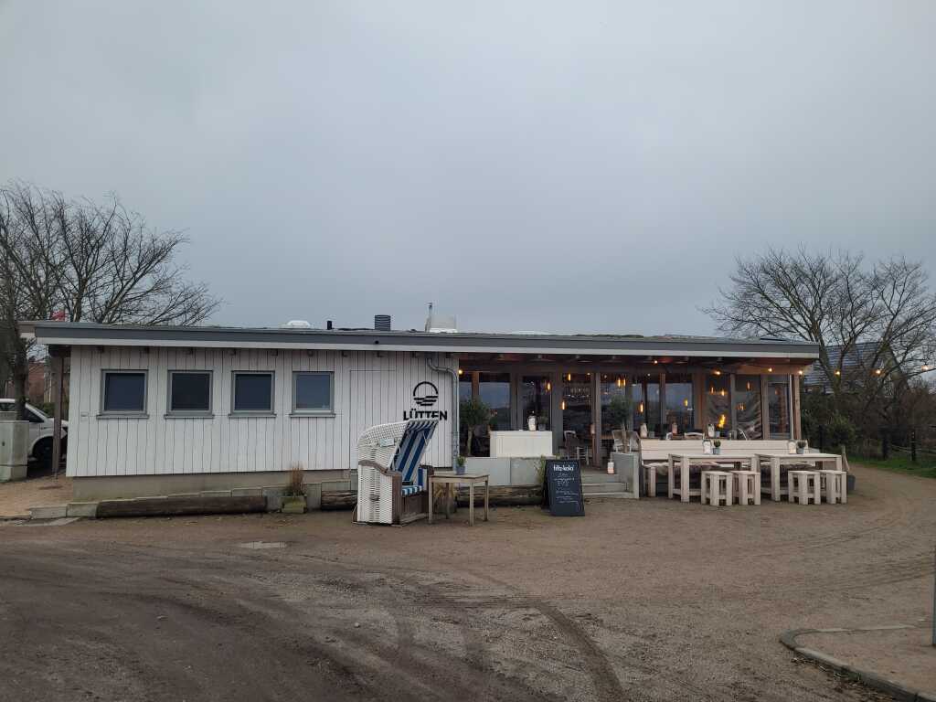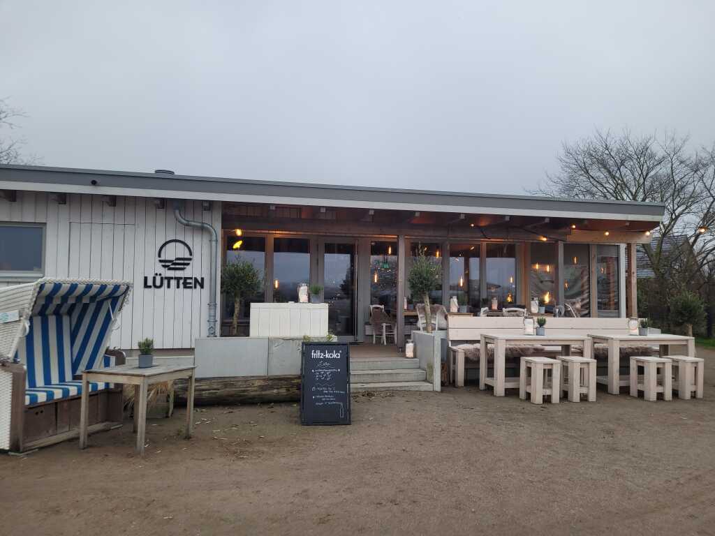 Das kleine Bistro ist überwiegend aus Holz gebaut, hat im Gastraum bodentiefe Fenster zum Blick auf die Ostsee, zusätzlich steht ein großer Wintergarten zur Verfügung. Im Sommer kann man rund um das Lütten auf mehreren Liegestühlen und in Strandkörben Platz nehmen, und den ein oder anderen Cocktail bei einem schönen Sonnenuntergang am Meer genießen.